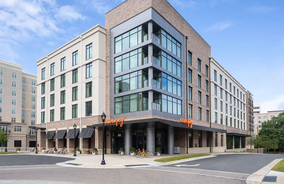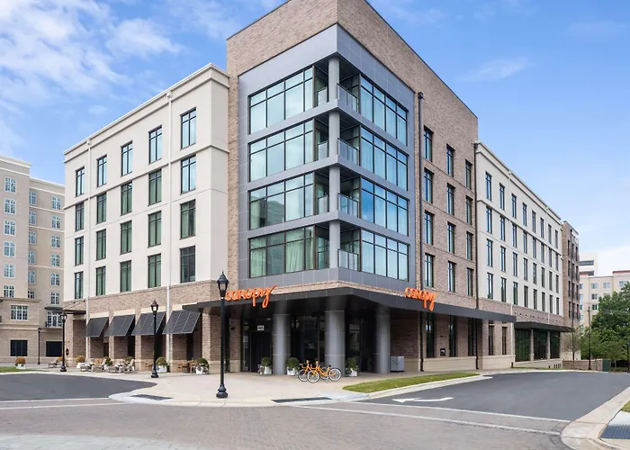 Canopy By Hilton Charlotte SouthPark is a 4-star hotel featuring modern amenities and an on-site restaurant. Guests can enjoy free bikes, a fitness center, and evening drink tastings. Situated in a prominent shopping district, the hotel offers convenient access to local attractions.
