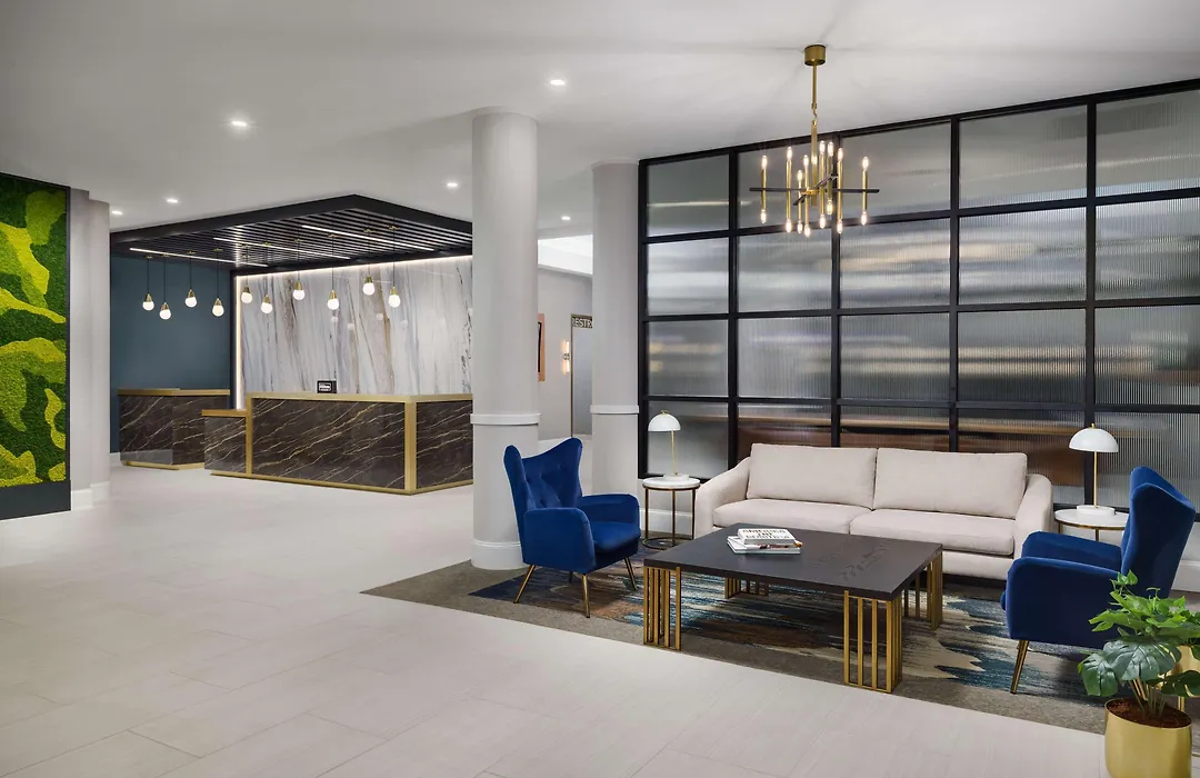 The hotel provides a business center and meeting facilities suitable for corporate events. It is conveniently located near major business offices like Bank of America and Wells Fargo, making it ideal for business travelers.