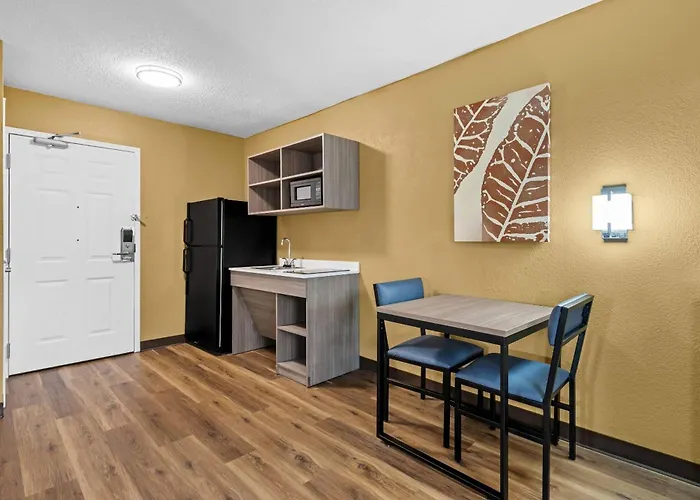 Guestrooms at Mainstay Suites Charlotte - Executive Park include air conditioning, laptop-friendly workspaces, and kitchenettes with full-sized refrigerators. Amenities also feature complimentary WiFi and flat-screen TVs. The hotel offers both studios and suites designed for comfort and functionality.