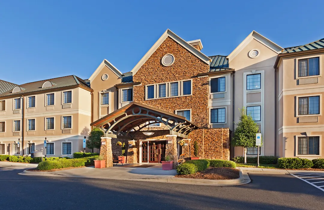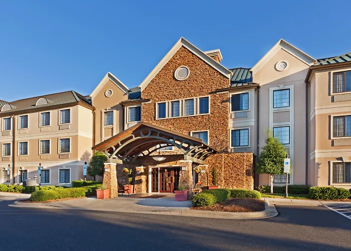 Staybridge Suites - Charlotte Ballantyne By Ihg features pet-friendly accommodations with amenities including a heated indoor pool, 24-hour fitness center, and complimentary hot buffet breakfast. This 3-star Charlotte hotel is designed for both short and extended stays, offering spacious suites with full kitchens and variably-sized living areas.